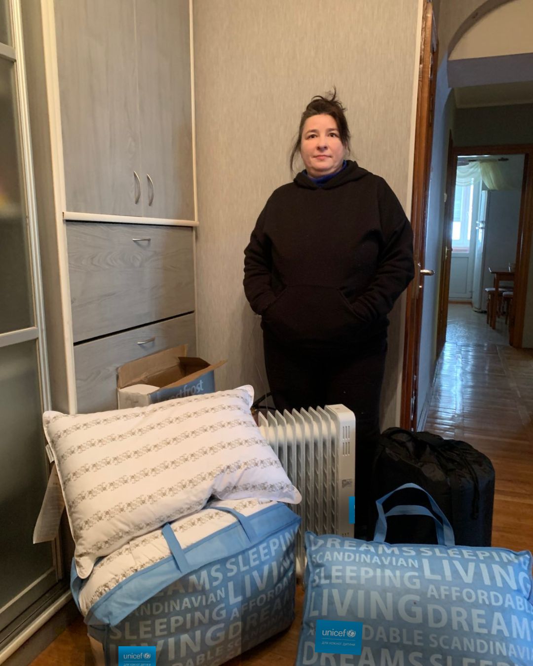 У межах гуманітарного реагування ГС «Українська мережа за права дитини» у партнерстві з UNICEF Ukraine та ГО «Соціальна синергія» передали родині обігрівач, теплі ковдри, спальні мішки, постіль та подушки.