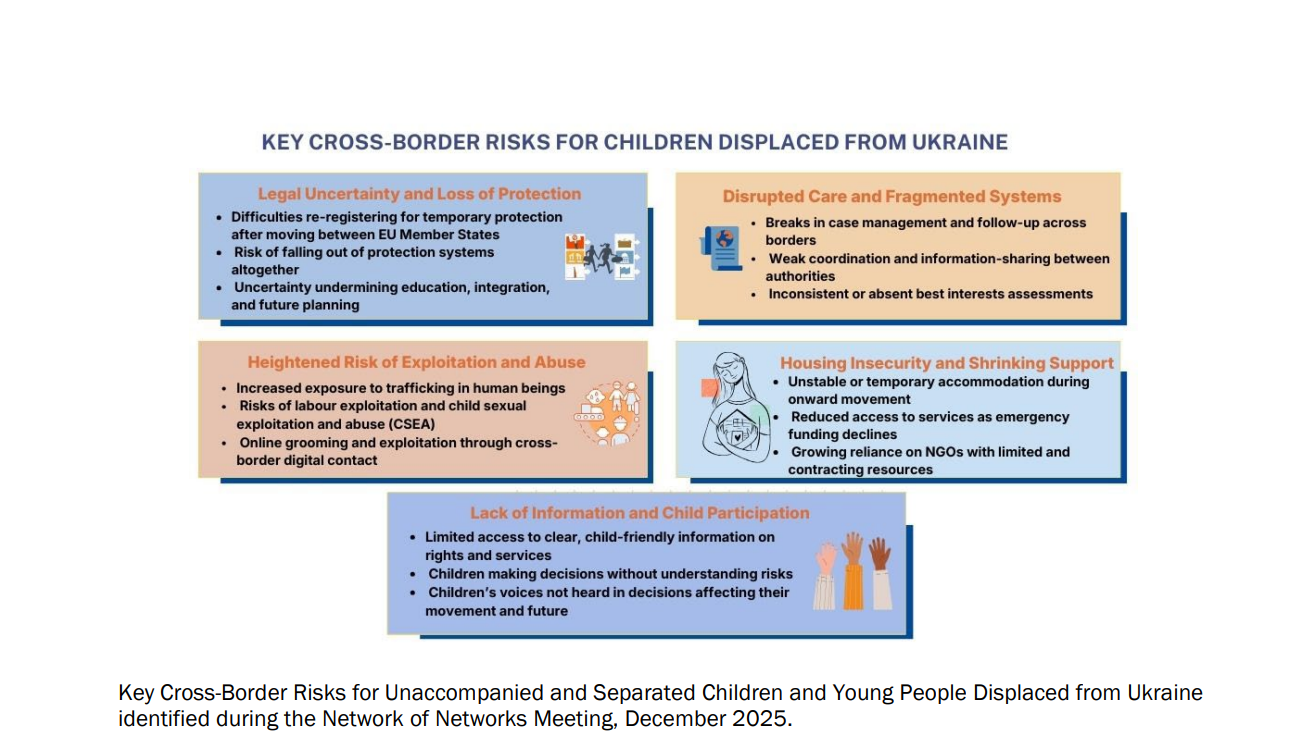 Під час зустрічі мереж у Брюсселі в грудні минулого року було визначено, що транскордонне переміщення посилює ризики для дітей і молодих людей без супроводу та розлучених із сім’єю, переміщених з України.